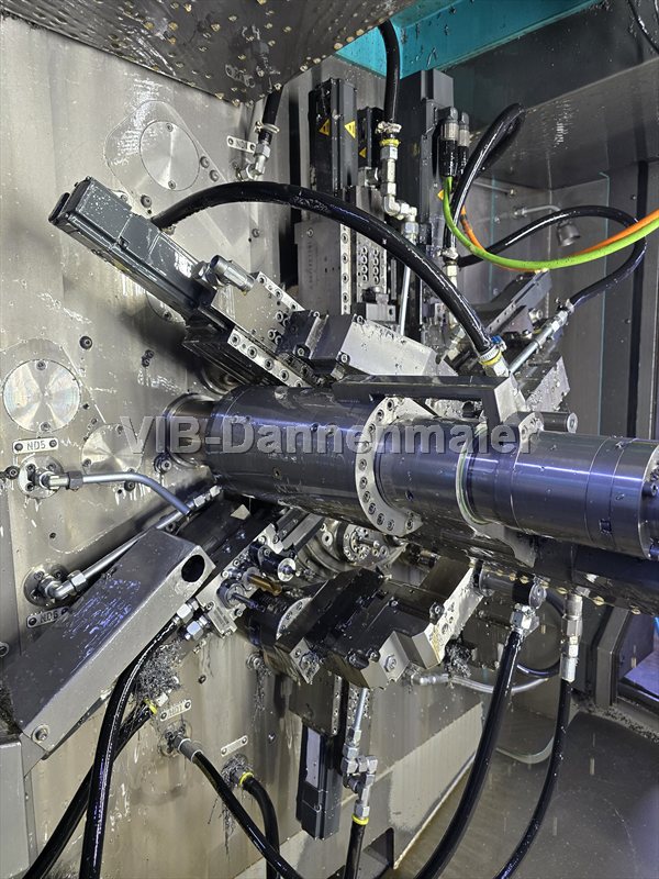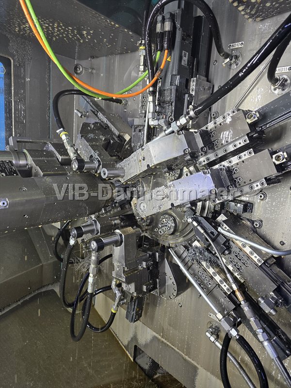 Il tornio multimandrino CNC usato INDEX MS 22 C garantisce la massima produttività per pezzi torniti corti con diametro barra fino a 22 mm. Sei mandrini motorizzati raffreddati ad aria, fino a due mandrini sincroni orientabili e fino a 11 portautensili configurabili in modo flessibile consentono di eseguire operazioni di lavorazione complesse in un unico serraggio. Gli utensili motorizzati, l'asse C e il controllo Siemens Sinumerik 840D sl garantiscono tempi di ciclo brevi, elevata sicurezza di processo e qualità riproducibile nella produzione in serie.