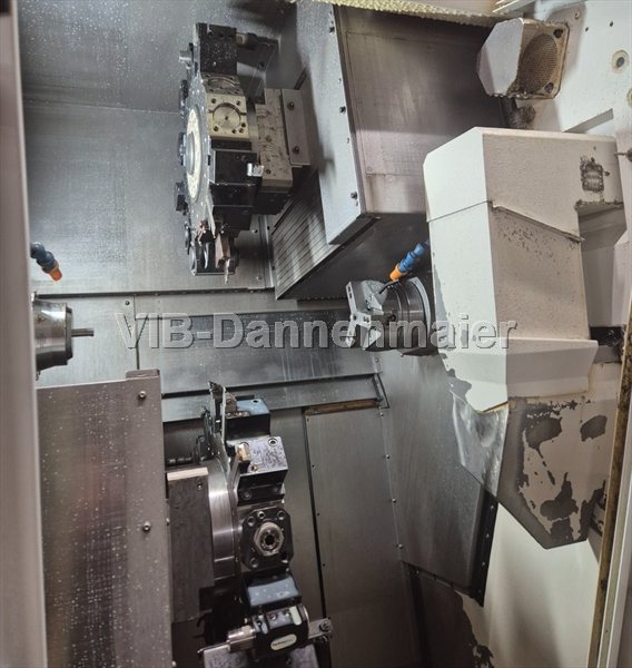 La Nakamura-Tome WY-150 usata è un tornio/fresatrice CNC compatto e altamente produttivo per pezzi torniti corti e lavori di mandrino complessi. Due mandrini contrapposti con passaggio barra fino a 51 mm e torrette superiori e inferiori a funzionamento simultaneo, ciascuna con proprio asse Y, consentono una vera lavorazione parallela in un unico serraggio. Fino a 48 utensili, torrette stabili ed elevati numeri di giri del mandrino garantiscono tempi di ciclo brevi, lavorazioni sicure e qualità riproducibile nella produzione in serie.